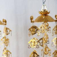 お仏壇の天井から一対吊るすのが隅珱珞(すみようらく)です。 本来は宝石や石などを紐でつないだアクセサリーで、笠の回りには蓮のつぼみがあります。