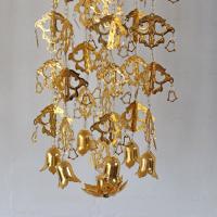 アルミ蓮笠瓔珞 ようらく 1対 金メッキ 小 3号 白玉 高さ19.5cm