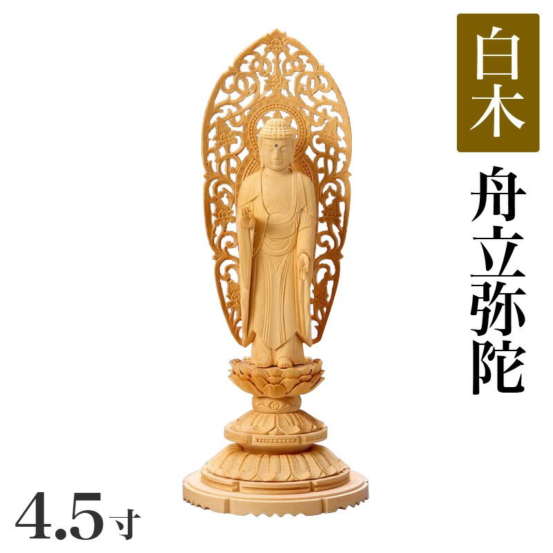 仏像 白木製 丸台座 4.5寸 高さ:285mm 舟立弥陀 木彫 仏像 浄土宗 高さカテゴリ:280mm〜299mm