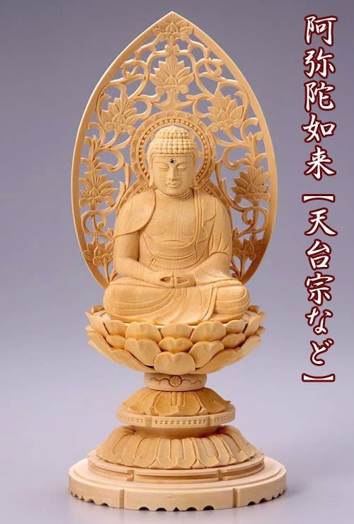 仏像 白木製 丸台座 3.5寸 高さ:315mm 阿弥陀如来 木彫 仏像 天台宗 高さカテゴリ:300mm〜329mm