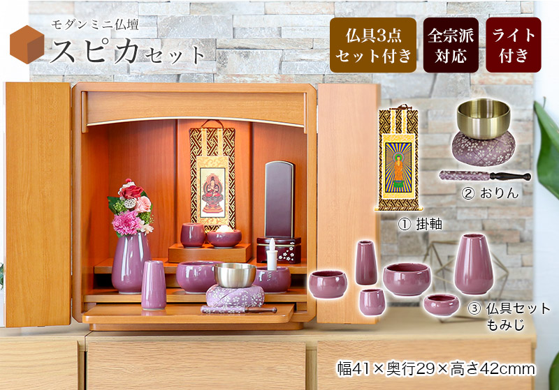 仏壇 仏具セット スピカセット 紫檀・ウォールナット・ナチュラル 仏壇 モダン 仏壇 おしゃれ 仏壇 ミニ おしゃれ