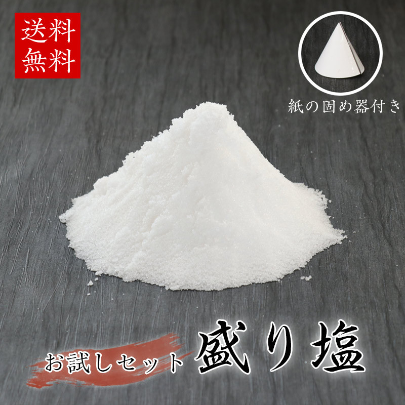 ・盛り塩が初めての方のお試し用セットです。粗塩300gと厚紙で作る固め器が付いています。