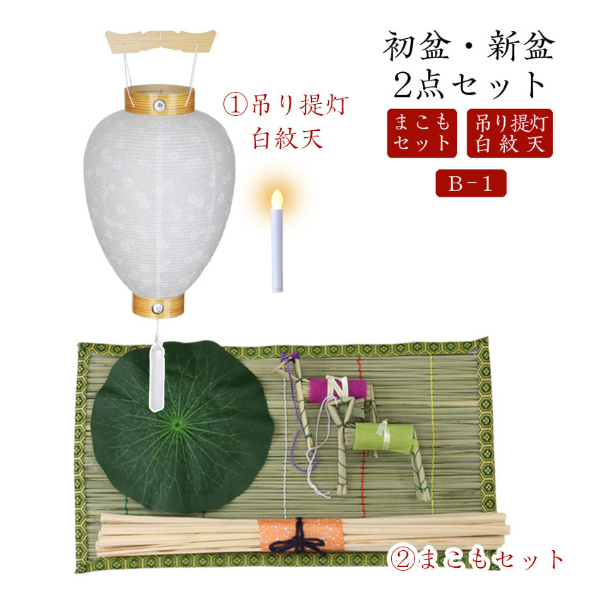 初盆セット 新盆セット 白紋天+まこもセット【初盆・新盆 初盆 2点セット B-1】お盆飾り 初盆飾り 盆提灯 盆ちょうちん 提灯