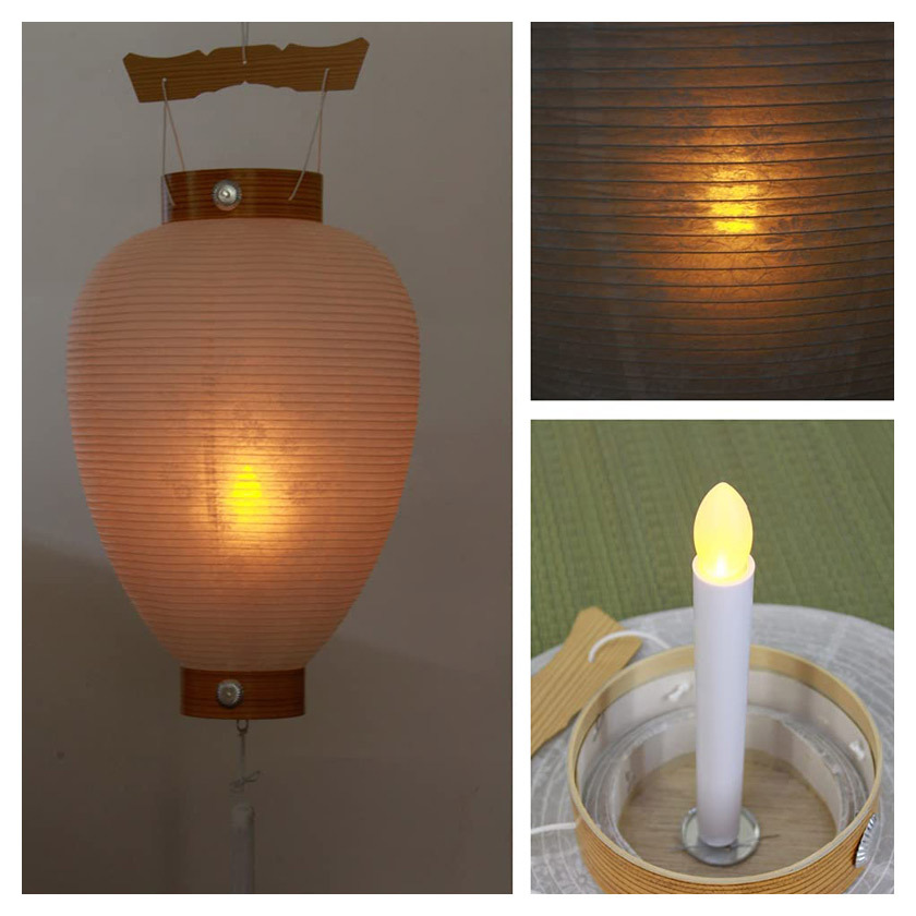 ・吊り提灯 白紋天 No.30 (LED電池ローソク灯付)