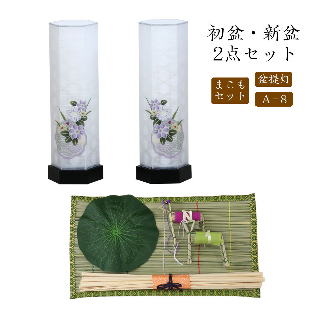 初盆セット 新盆セット 盆提灯+まこもセット【初盆・新盆 初盆 2点セット A-8】お盆飾り 初盆飾り 盆提灯 盆ちょうちん 提灯