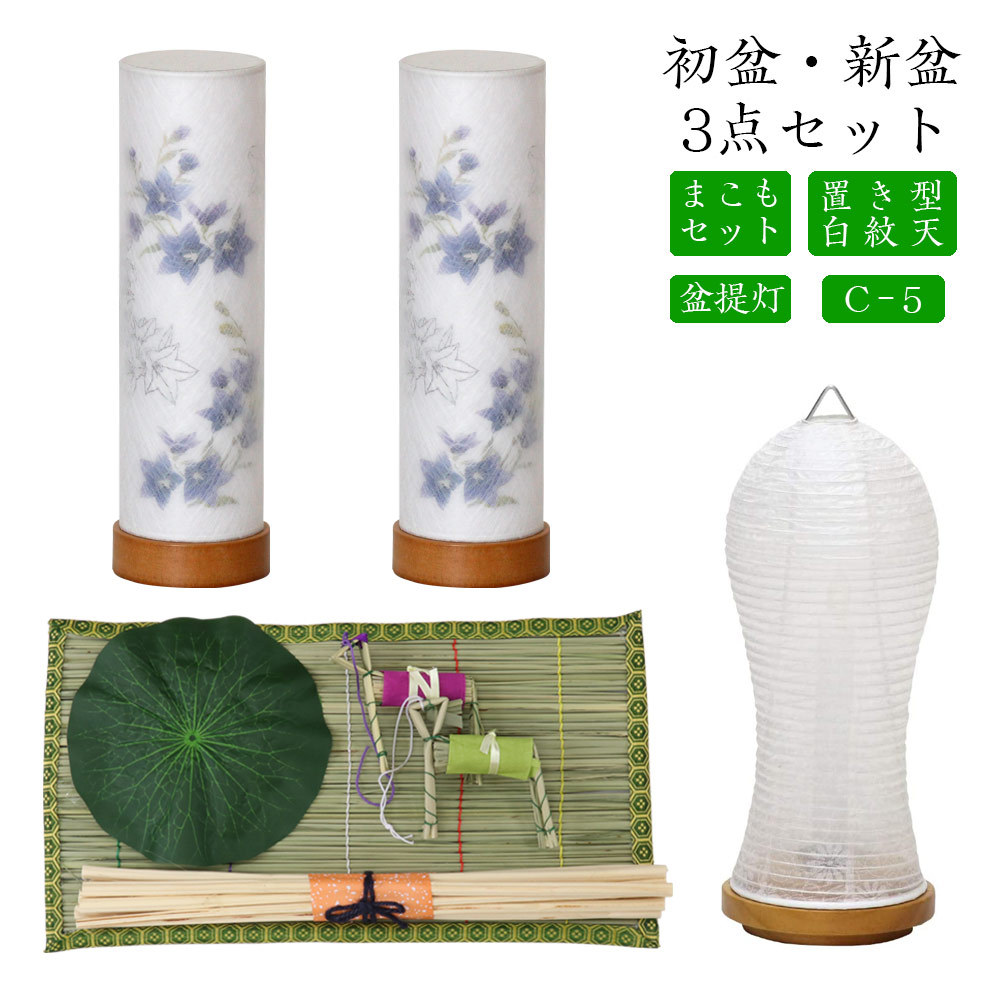 初盆セット 新盆セット 白紋天+盆提灯+まこもセット【初盆・新盆 初盆 3点セット C-5】お盆飾り 初盆飾り 盆提灯 盆ちょうちん 提灯