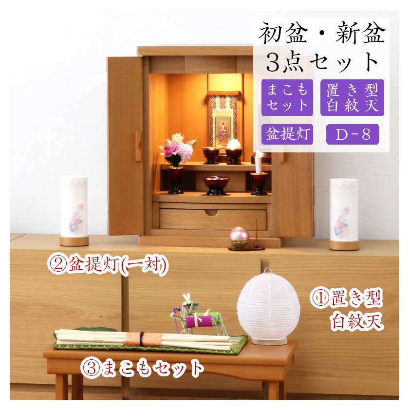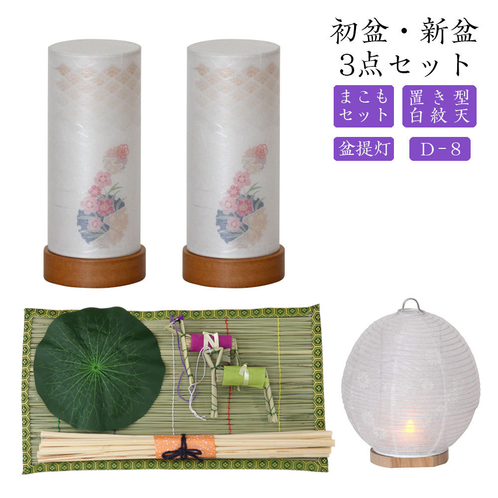 初盆セット 新盆セット 白紋天+盆提灯+まこもセット【初盆・新盆 初盆 3点セット D-8】お盆飾り 初盆飾り 盆提灯 盆ちょうちん 提灯