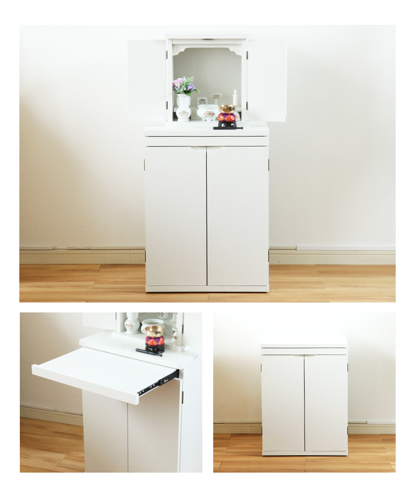 お供え物や仏具も置ける格納式の膳引き付きで便利です。