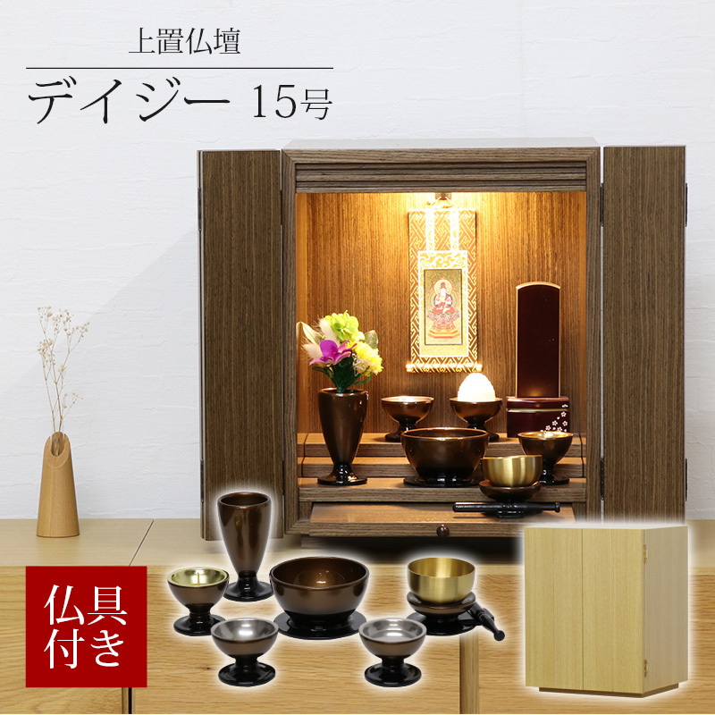 仏壇 仏具セット デイジー 15号 ライト ウォールナット 小型仏壇 コンパクト モダン ミニ