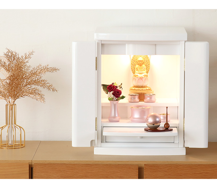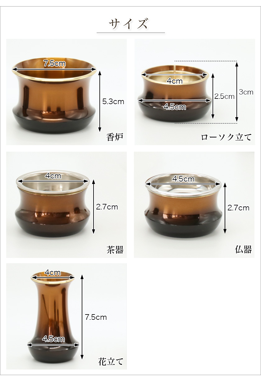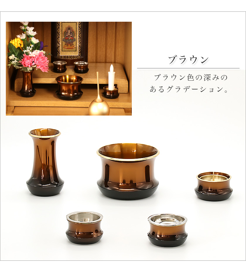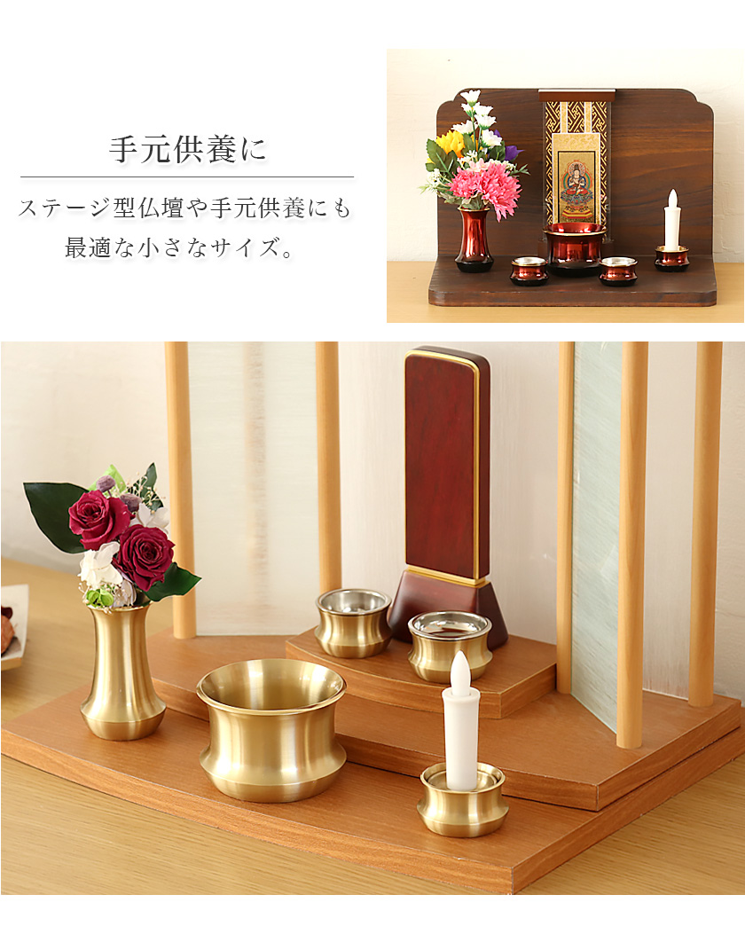 ステージ仏壇や手元供養にも合わせやすい小さめサイズの仏具です。