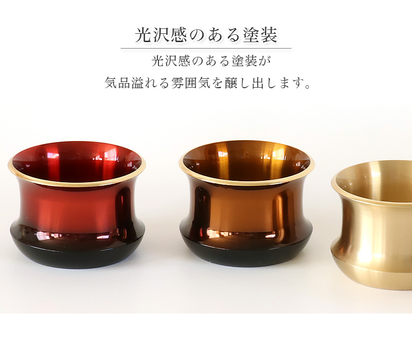 真鍮製の仏具は、水にも強く錆びにくく、落としても割れないので安心してお使いいただけます。