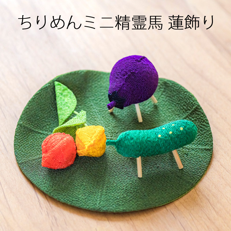 お盆飾り ちりめんミニ精霊馬 蓮飾り (57-3) 牛 茄子 胡瓜 縮緬 ほうずき 精霊棚 盆提灯 初盆 新盆 日本製 国産