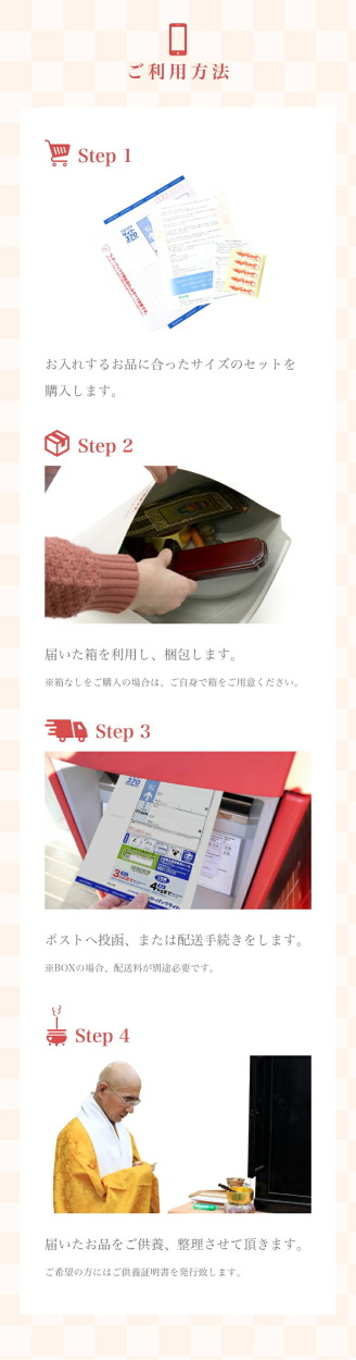 6.弊社に到着後、お品に合った形で大切にご供養させて頂きます。