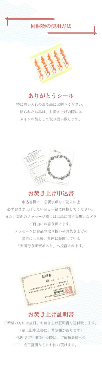 4.お焚き上げ申込書に必要事項をご記入の上、同梱してください。