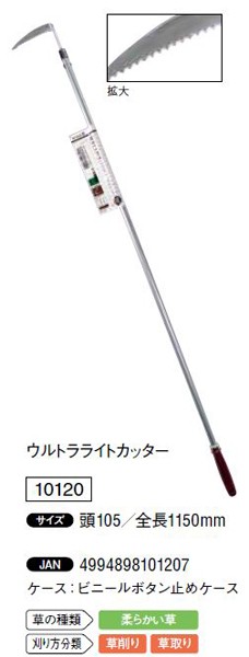 ウルトラライトカッター 頭105/全長1150mm 柔らかい草 草削り 草取り ケース:ビニールボタン止めケース 浅野木工所 10120