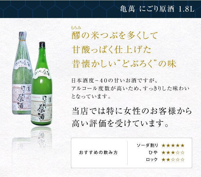 亀萬にごり原酒 1800ml【甘口な熊本の酒】
