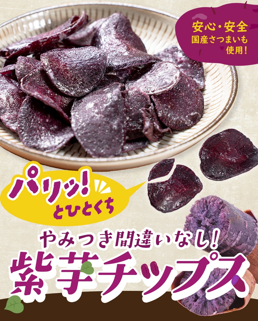 紫芋チップス 計220g(110g×2袋) 送料無料 便利な 小分け チップス スイーツ 芋 さつまいも お菓子 国産 おやつ 《1-5営業日以内に発送予定(土日祝除く)》