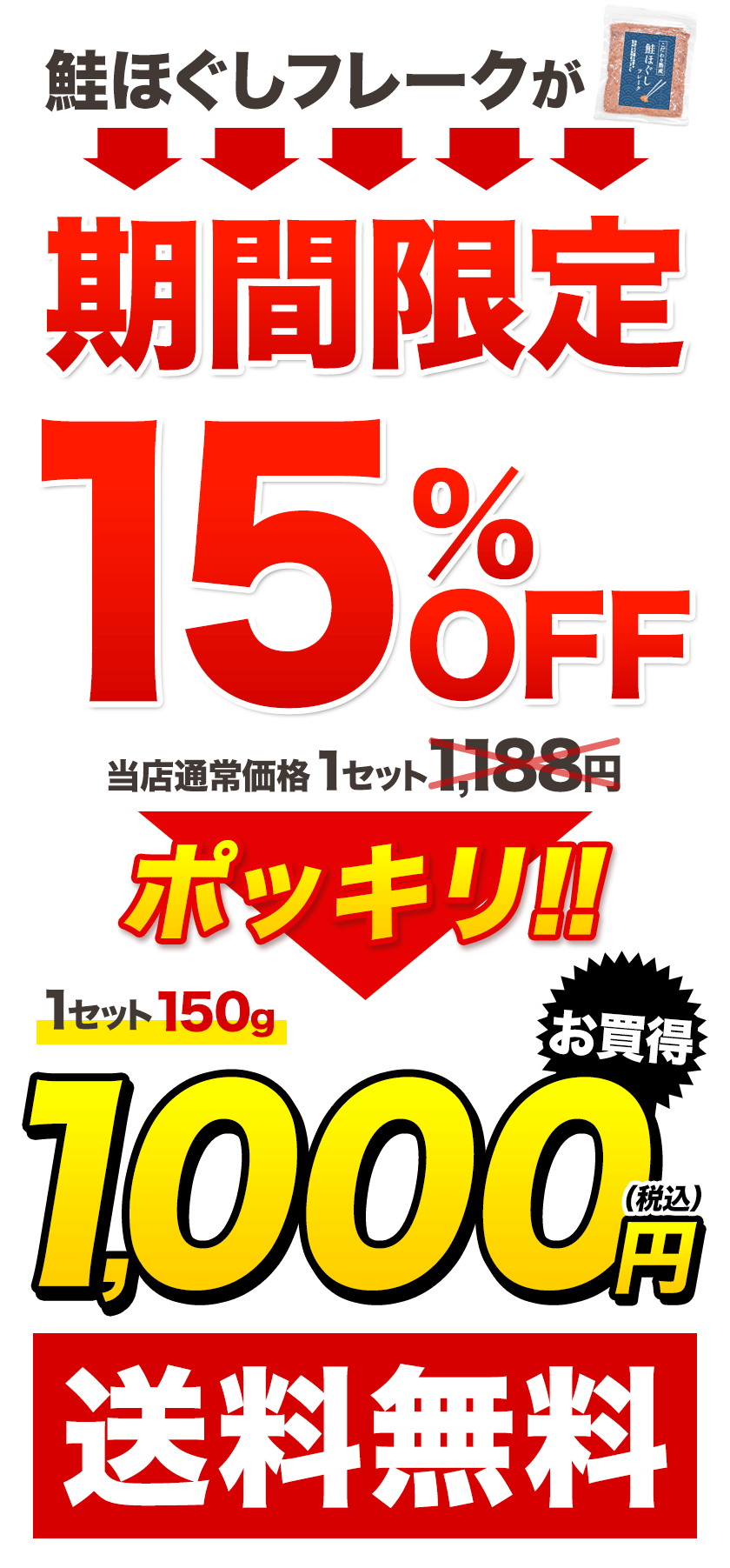 セール 1000円ポッキリ 鮭 ほぐし フレーク こだわり熟成 150g 送料無料 サケ ご飯 ふりかけ お米 お弁当 おにぎり べに鮭 1-5営業日以内の発送予定