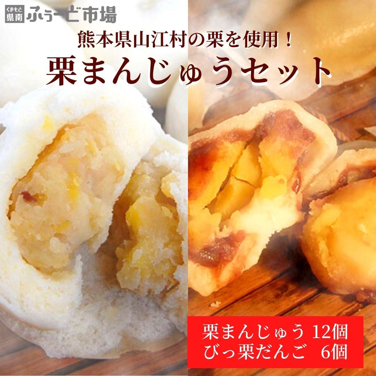 栗の産地で有名な熊本県山江村の栗を100パーセント使用し、ふわっとした皮に栗と白あんを包んだ栗まんじゅうと、もっちとりした皮に大粒栗と小豆を包んだびっ栗だんごの詰合せです。