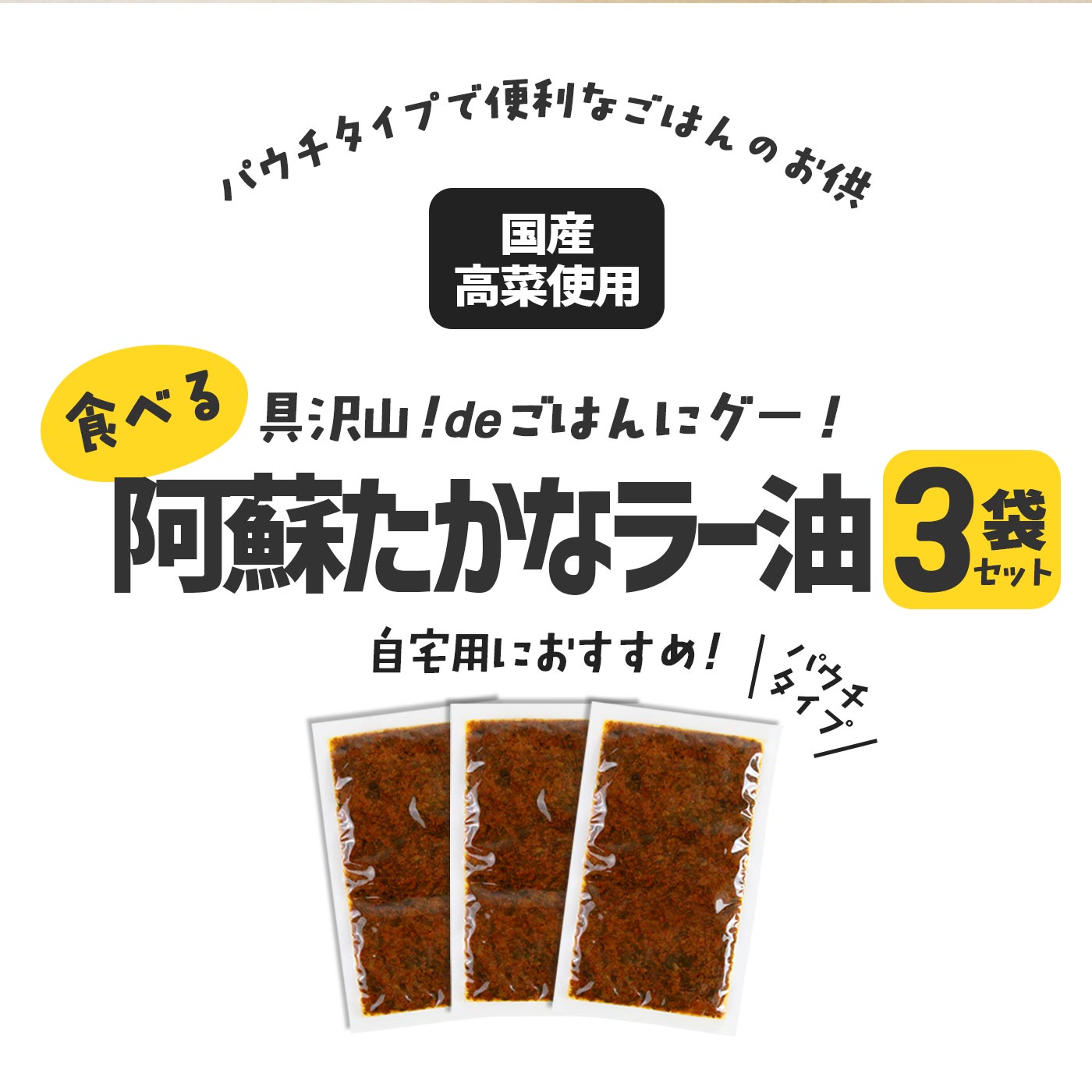 業務用 食べるラー油と阿蘇高菜漬3袋セット450g(150g×3袋)激辛 熊本県阿蘇産たかな使用 ラー油 辣油 阿蘇高菜漬 刻み たかな漬け メール便 送料無料
