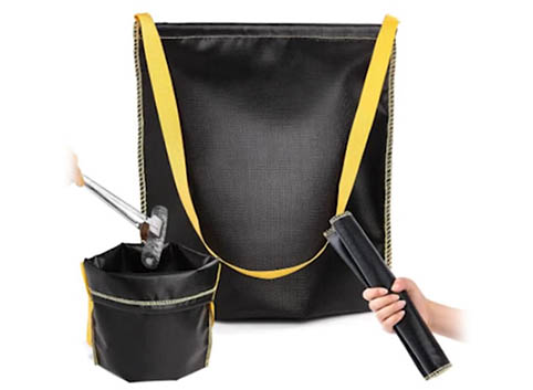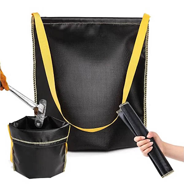 | 燃え残りの炭や薪を 安全に持ち帰られる火消袋 エルモ アウトドアキャンプ用、火消袋 #3442 炭や薪を入れることで、酸欠状態にして消火できるアイテム。アウトドアシーンでの焚き火や、自宅の庭やベランダでBBQをした際の後始末に役立つ。底部はマチ付きで安定感があり、入口はマグネットでしっかりとなんとかじられるため、中身がこぼれ落ちる心配がない。防水加工済みで水が染み込まず、拭き掃除が容易にできる。 |  |