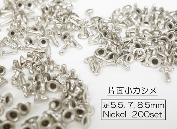 お得 片面小カシメ (頭6mm) 足5.5, 7, 8.5mm ニッケル 200個セット