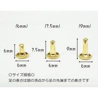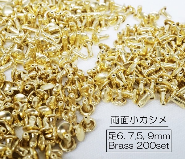 お得 200組セット 両面小カシメ (頭6mm) 足6, 7.5, 9mm ブラス 真鍮生地