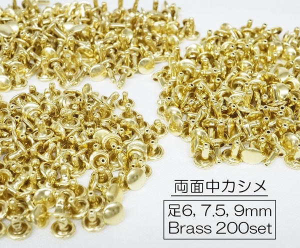 お得! 両面中カシメ (頭7mm) 足6, 7.5, 9mm ブラス 真鍮生地 200個セット