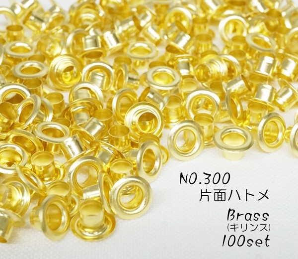 お得! NO.300 (内径4.6mm) 片面ハトメ 丸潰 座付 真鍮製 ブラス(キリンス) 100個セット