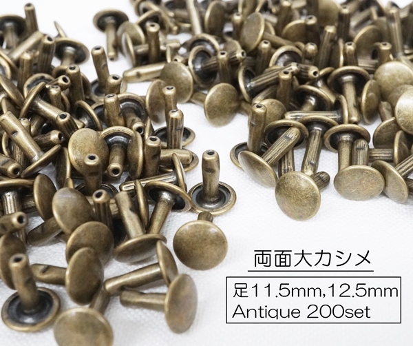 お得 両面大カシメ (頭9mm) 足長タイプ 足11.5mm, 12.5mm アンティーク 200個セット