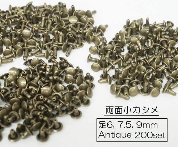 お得 200個セット 両面小カシメ (頭6mm) 足6, 7.5, 9mm アンティーク