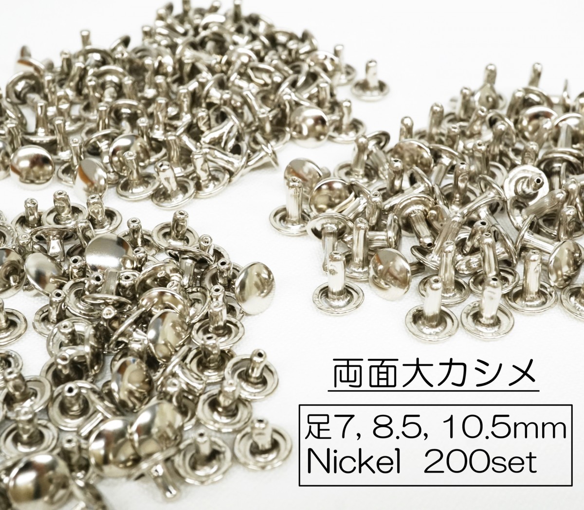 お得 両面大カシメ (頭9mm) 足7mm, 8.5mm, 10.5mm ニッケル シルバー色 200個セット