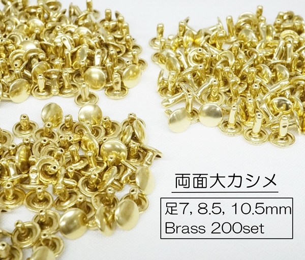 お得 両面大カシメ (頭9mm) 足7, 8.5,10.5mm ブラス 真鍮生地 200個セット