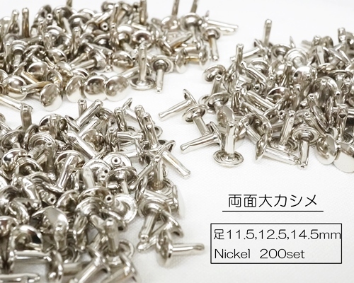 お得 両面大カシメ (頭9mm) 足長タイプ 足11.5mm, 12.5mm, 14.5mm シルバー 200個セット