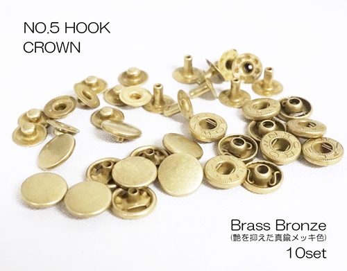 NO.5 バネホック (CROWN) 真鍮ブロンズ色 (艶を抑えた真鍮メッキ色) 10個入り kume1023-BB