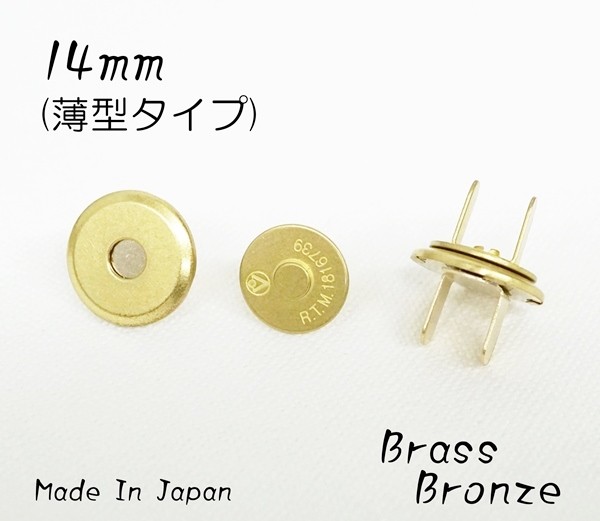 14mm 薄型マグネットホック 割足 真鍮ブロンズ色 (日本製) kume1136