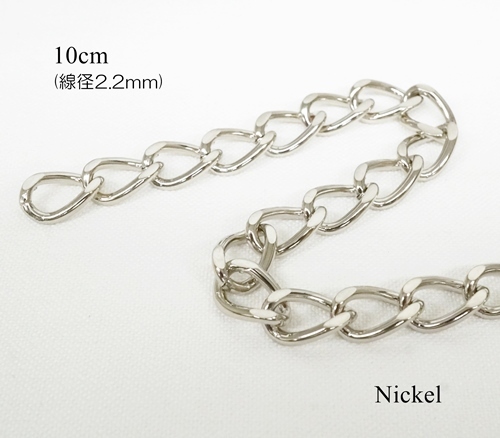 線径2.2mm ハンドメイド用チェーン 10cm ニッケル シルバー色 kume1515