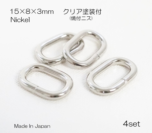 クリア塗装付 焼付ニス 丸線小判カン 15×8×3mm ニッケル 4個入り kume165-C