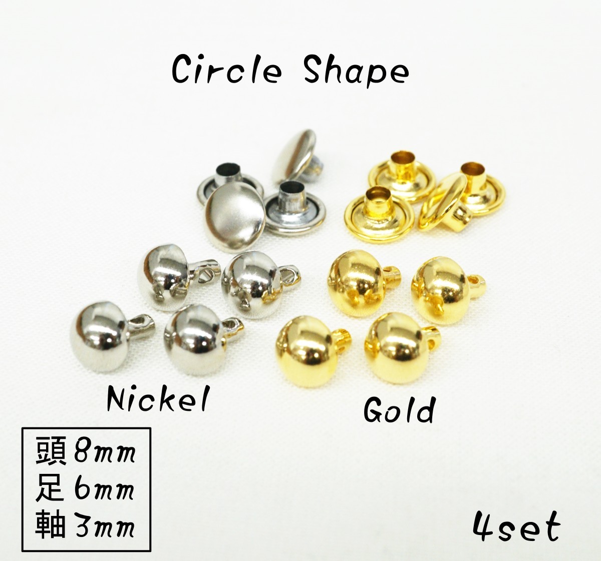 頭8mm 足6mm 銅製 丸型底鋲 ニッケル ゴールド 4個セット kume433