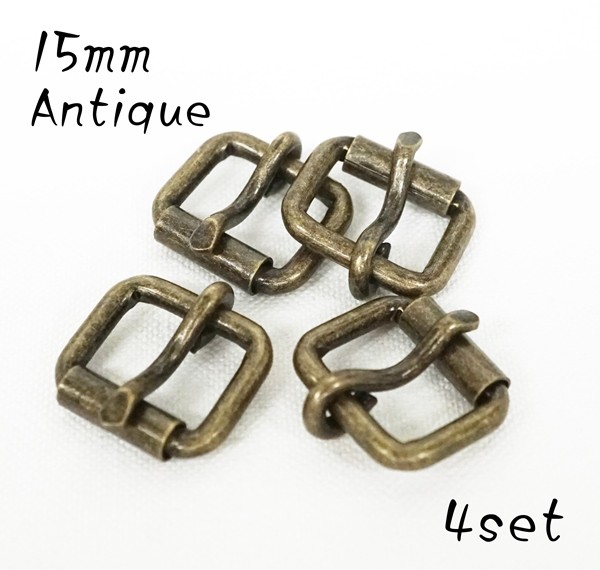 ベルト幅15mmの管(ローラー)の付いたバックルです。<br>