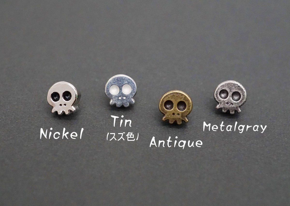 こちらは当店オリジナルのドクロモチーフの飾りカシメです。