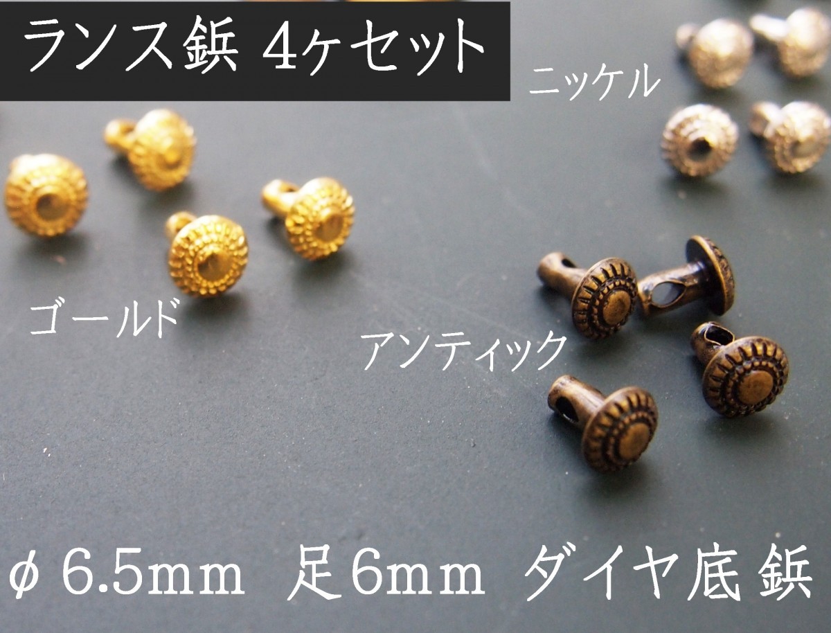 商品名◆ ダイヤランス鋲 φ6.5mm×足6mm ◆4セット◆