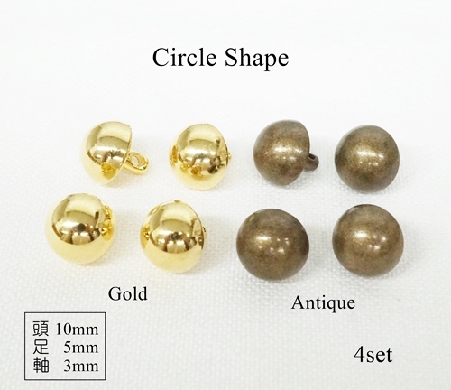頭10mm 足5mm 銅製 丸型底鋲 ゴールド アンティーク 4個セット kume855-5