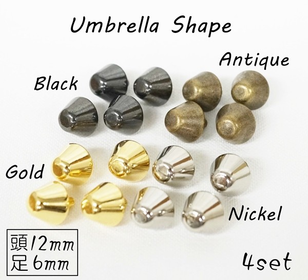 頭12mm 足6mm 傘型ランス ブラック アンティーク ゴールド ニッケル 4セット kume856