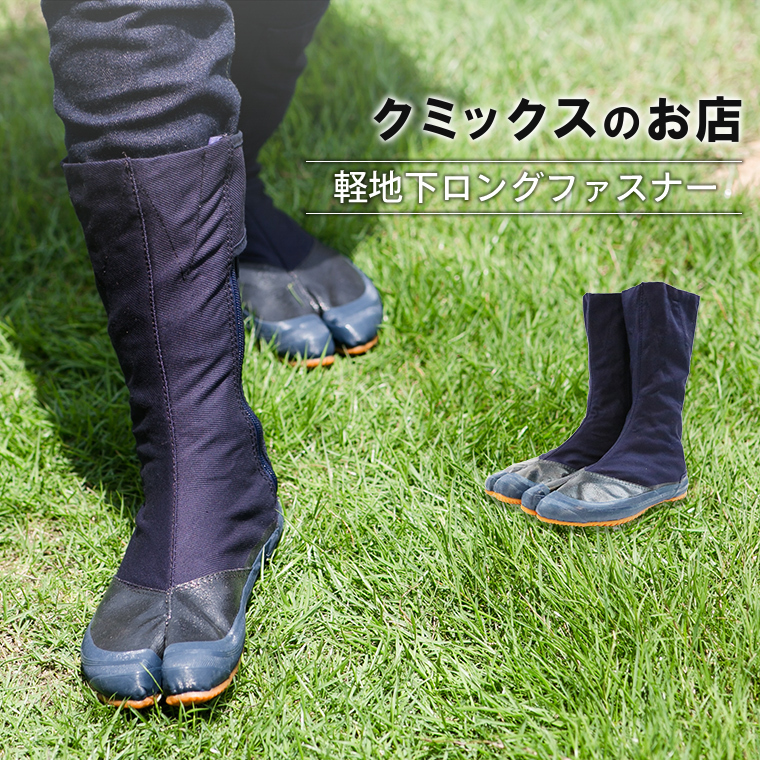 ふくらはぎ部に面ファスナーと甲ゴム付きでフィット感を調整!