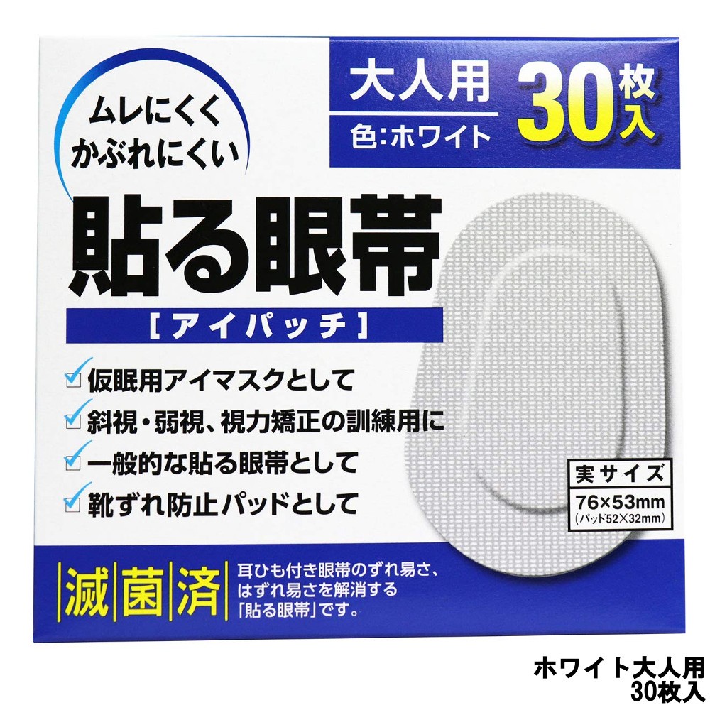 品名・内容量 | 大洋製薬アイパッチ貼る眼帯ホワイト大人用30枚入[taiyo/眼帯/貼るタイプ/通気性/不織布/遮光/便利/メガネ/仮眠/アイマスク/斜視/弱視/視力矯正/靴擦れパットにも] |