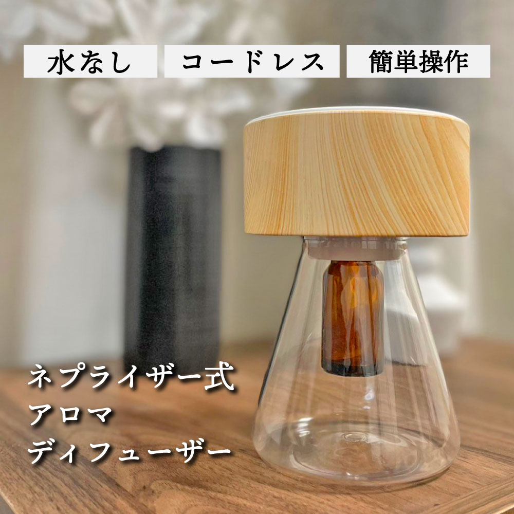 | 品名・内容量 | アロマディフューザー ネプライザー式 フラスコタイプ 10畳 12畳 用エッセンシャルオイル対応 精油対応 卓上 [ 水なし ネプライザー コードレス おしゃれ 水をつかわない 静音 木目調 ガラス調 車 車用 水なし コンパクト タイマー おしゃれ 玄関 加湿なし 丸型 ] |