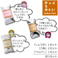 ・チャイ★しょうが版…6g入が5袋 ・チャイ★ペッパー版…6g入が5袋 ・チャイ★八角版…6g入が5袋 全部のチャイを飲んでみた〜いという皆さん、このセットは割安になっています! ■送料無料です。(クリックポスト発送)