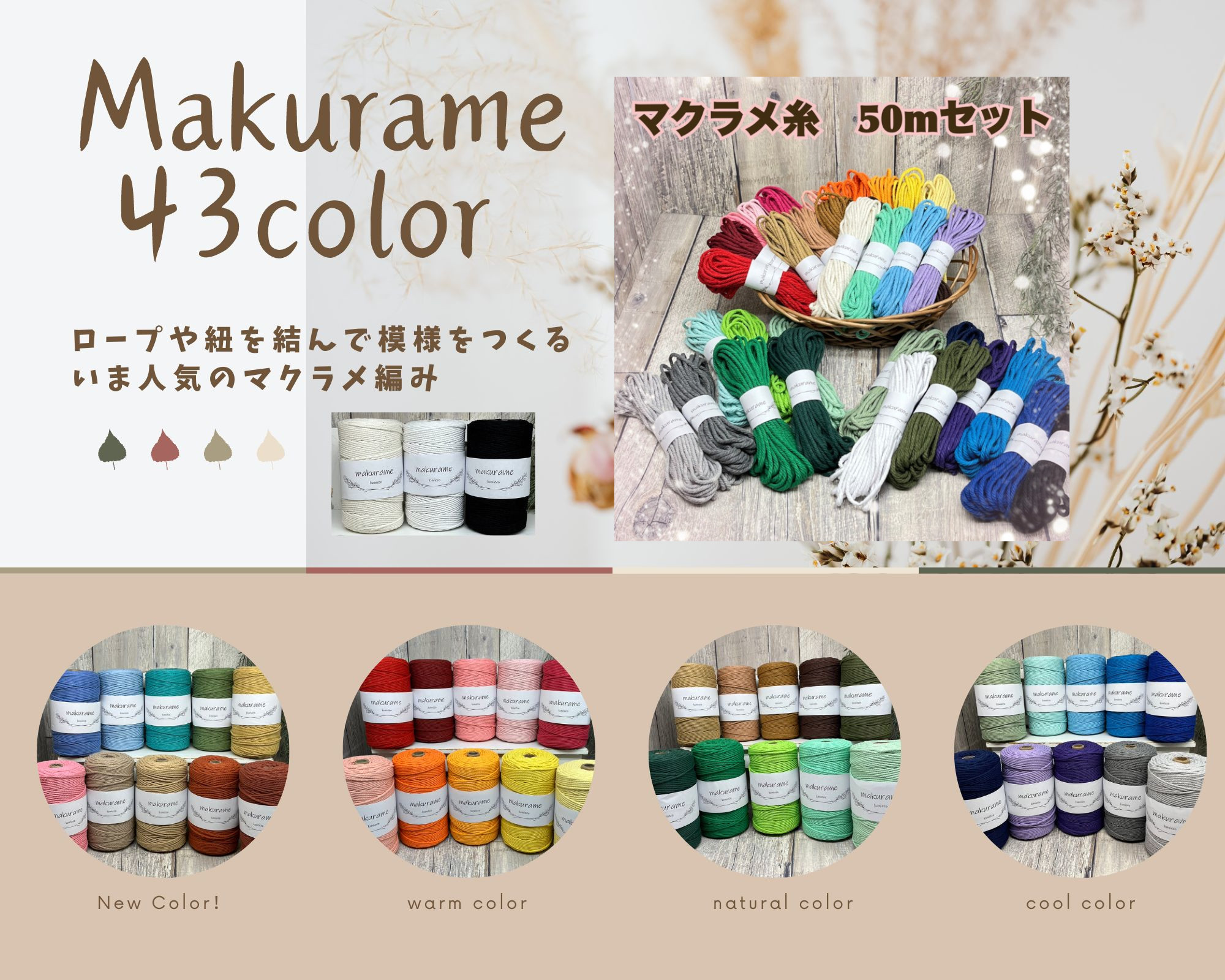 マクラメ【3mm】10m×5セット