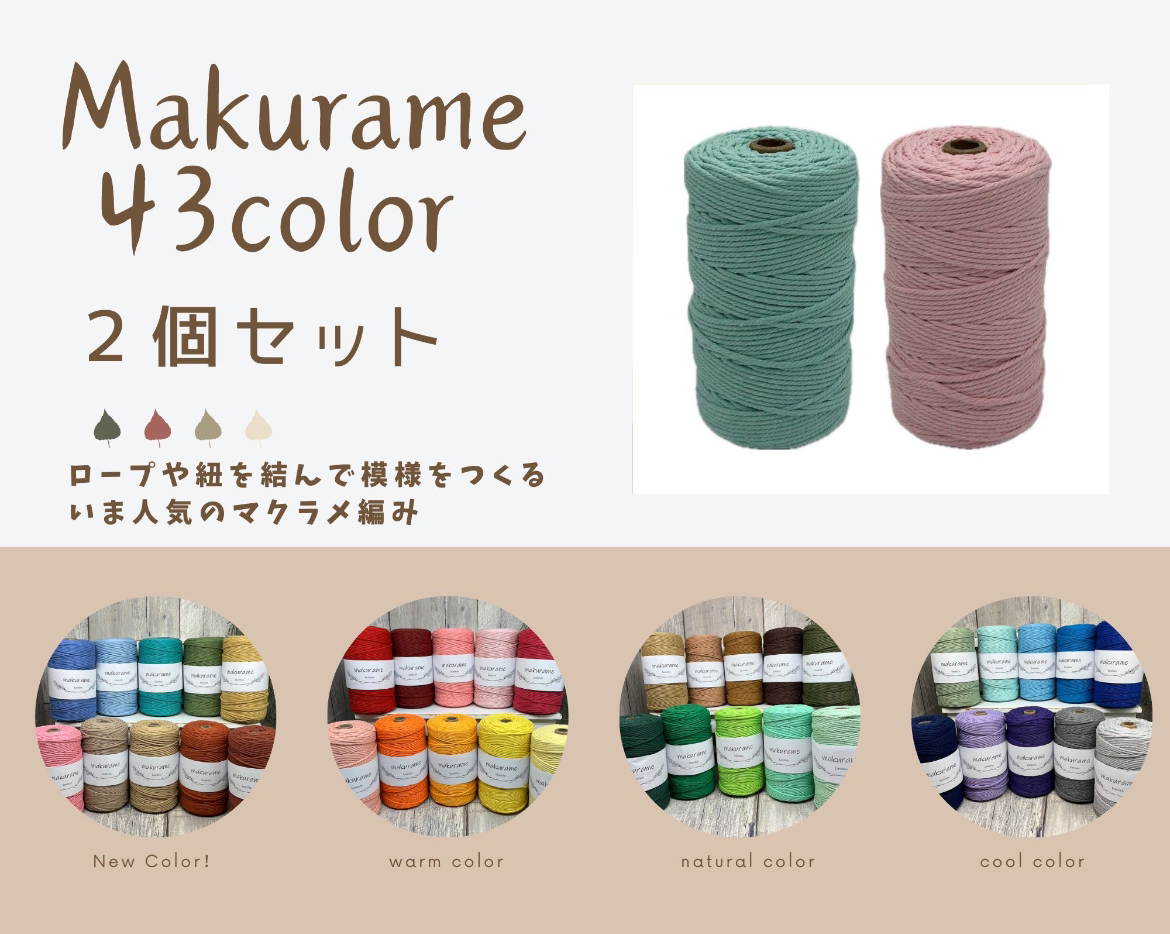マクラメ 3mm 200m コード 2個セット 紐 綿 コットン 糸 ロープ マクラメ編み タペストリー タコ紐 DIY ハンドメイド